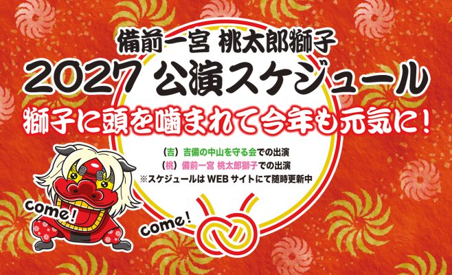 2025年11月30日 / 最終更新日 : 2025年12月4日 info@momotaro-shishi.com 活動履歴 2027 公演スケジュール 【吉】吉備の中山を守る会での出演 【桃】備前一宮 桃太郎獅子での出演 2027年 【吉】01/01(金祝) (岡山市)- ※吉備の中山を守る会で出演 【吉】01/02(土) (岡山市)- ※吉備の中山を守る会で出演 【桃 […]